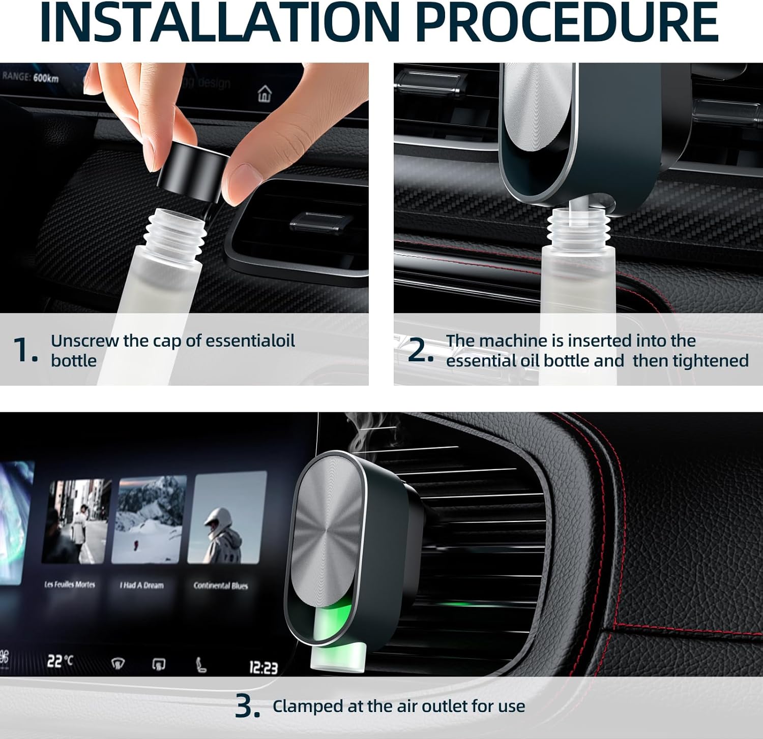 【Ultrasonic Atomization】-Ultrasonic technology in this car diffuser creates a fine mist that blends with air-conditioning, neutralizing odors efficiently. Unlike traditional car fresheners, these car diffusers for essential oils offer a more natural and lasting way to refresh your vehicle. Includes three bottles of natural plant extract perfume, safe for all ages,making it an ideal option for those looking for a thoughtful, natural gift during Women’s Day.