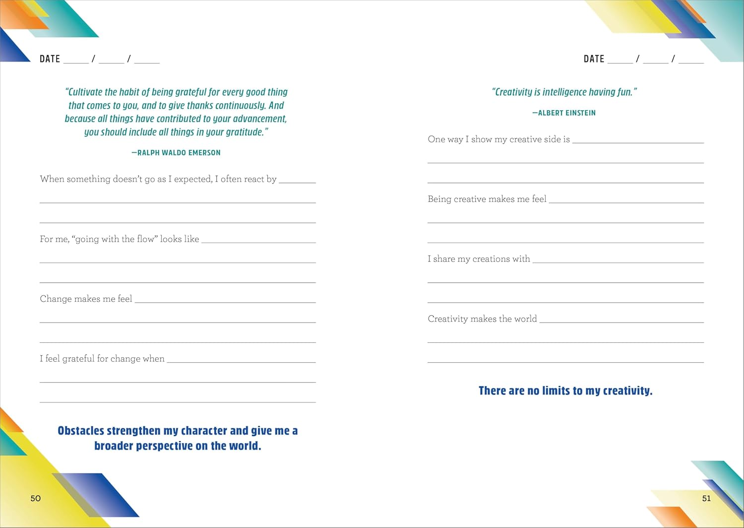 Guided goal setting―Does your teenager want to become more confident, change a habit, or create a new one? They’ll start by writing down their intentions, which will help them get to where they want to be faster.Empowering exercises―Thought-provoking writing prompts will help them make gratitude a habit. By practicing just 5 minutes a day, boys will begin to see real benefits, from waking up without hitting snooze to staying calm during tests or team try-outs.Words of wisdom―Affirmations and inspirational quotes from icons like Steve Jobs and Dwayne “The Rock” Johnson will empower teen boys to access a new superpower: resilience.