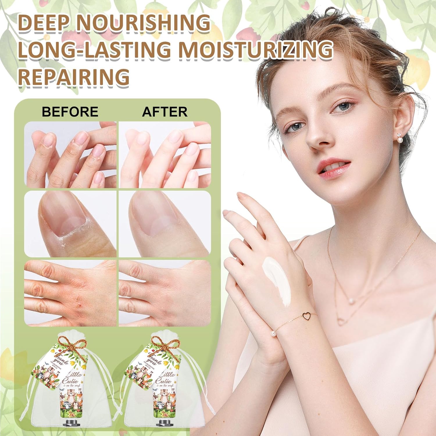 【Deep Moisturizing & Nourishing】This thank-you gift set’s hand cream is composed of natural plant extracts, shea butter, vitamin E, honey, and aloe vera. The hand creams bulk help the skin absorb quickly and maintain long-lasting moisture, without being greasy, suitable for most skin types, providing effective assistance to dry skin and deep nourishment.