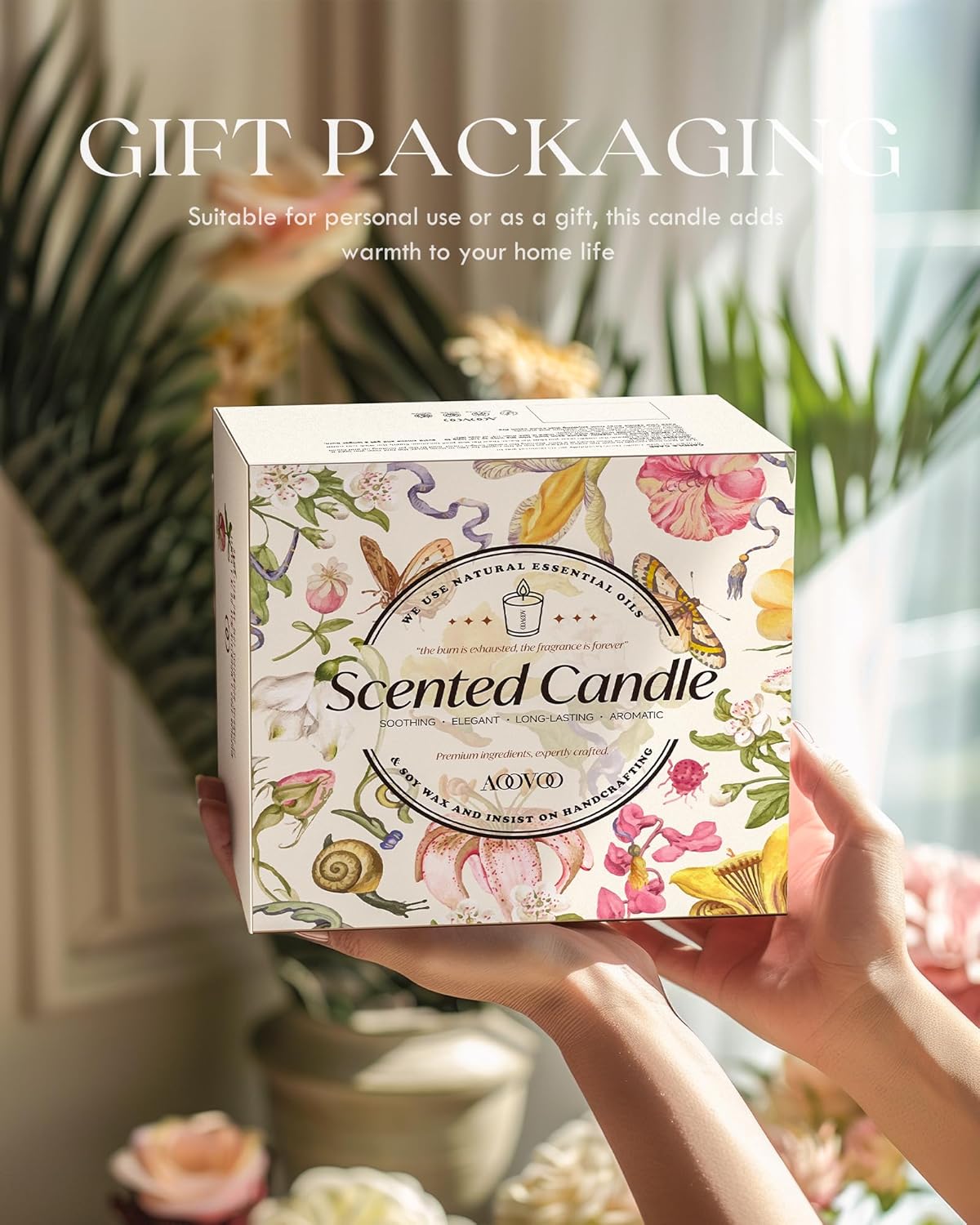 âï¸ The AOOVOO Candle Set is a delightful addition to any home, offering four unique scentsâLavender, Vanilla, Eucalyptus, and Sageâthat create a calming and inviting ambiance. Made from 100% soy wax, the candles burn cleanly without smoke or residue, offering a long-lasting burn time. The set is beautifully packaged in a decorative box with secure foam protection, making it an excellent gift choice for any occasion.The fragrance performance varies slightly. The Eucalyptus Fresh stands out with the strongest throw and a unique, nostalgic aroma. Cleansing Sage offers a pleasant cedar and citrus blend but performs better in smaller spaces. Serenity Lavender brings a creamy, subtle scent enhanced by amber and sandalwood, while Sea Breeze Vanilla is light and fresh, with seaside notes taking center stage over traditional vanilla. While the cold throw is average, the hot throw fills small to medium rooms effectively.These candles are perfect for aromatherapy or adding a touch of luxury to your space. Their subtle, natural scents are less overpowering than artificial fragrances, which some may prefer. At $8 per candle, they offer excellent value for a high-quality, stylish set thatâs ideal for gifting or personal use.â Pros:- Long-lasting, clean burn with 100% soy wax- Subtle, natural scents perfect for small to medium rooms- Beautifully packaged, ideal for gifting- Great value for the price- Eucalyptus Fresh and Cleansing Sage are standout scentsâ Cons:- Cold throw is below average- Some scents, like Sage and Lavender, have a lighter hot throw- Jars are plain compared to the elegant packagingðï¸Design: 9/10ðªDurability: 9/10ð¤Functionality: 8/10ð°Value: 9/10Star Rating: 5â – Elegant and Subtle Aromas with Great Gift Appealðð» Thanks for reading my review, and I hope it helps!