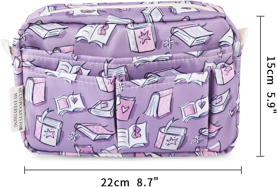 8 reviews for E-WEICHEN Multiple Pockets Portfolio Organizer with Zippered, Makeup Bag Travel Essentials for Women, Simple Waterproof Stationery Pencil Pouch Bag for Journal Office Art Supplies.Purple Magic Book