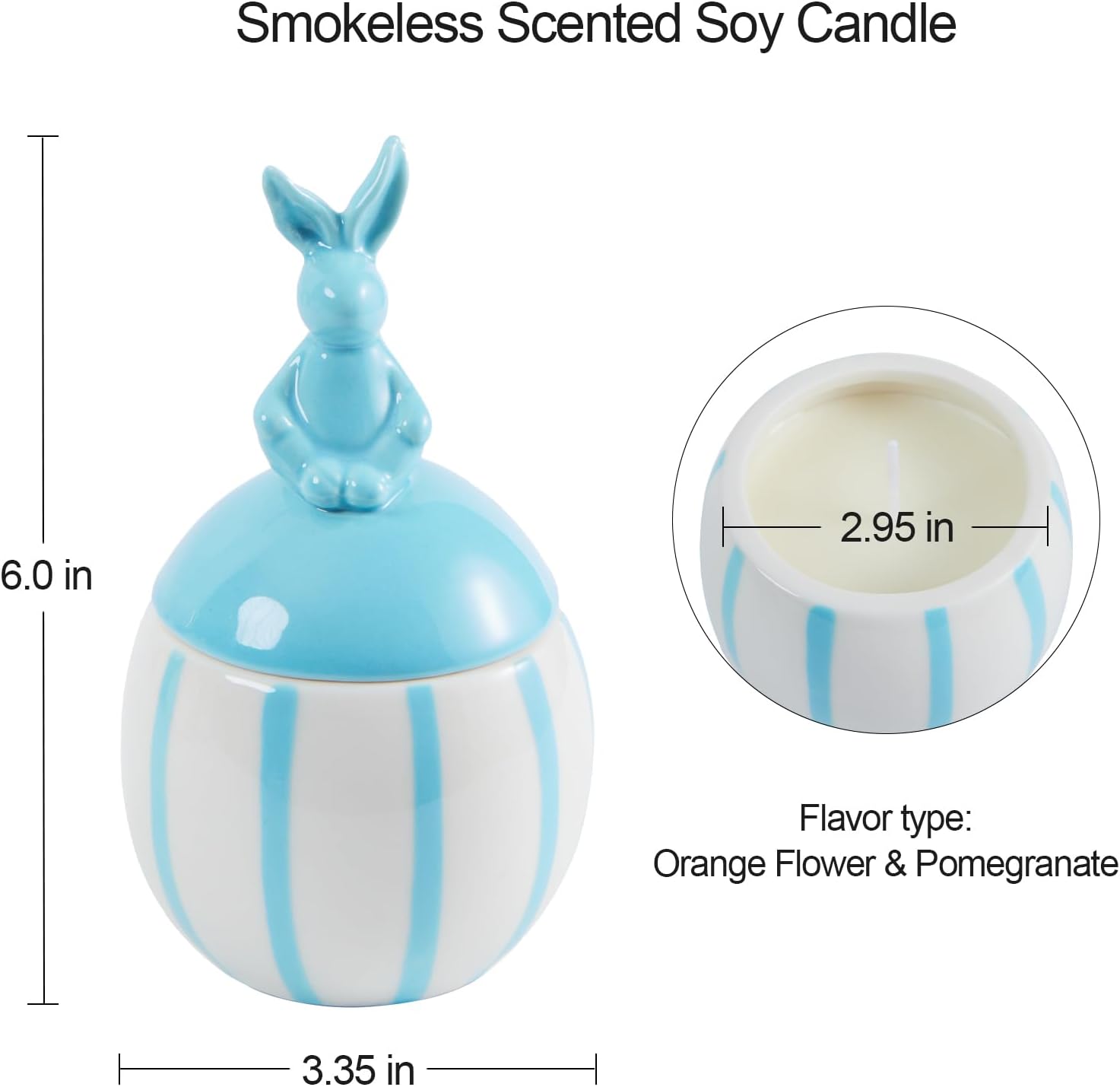 🐰Premium Craftsmanship & Fragrance🐰 Expertly crafted from high-quality white soy wax, this scented candle delivers an orange flower & pomegranate aroma for any room. Encased in a uniquely designed egg-shaped ceramic jar with striking blue and white stripes, its charming rabbit-shaped lid transforms it into a decorative candle ideal for enhancing your home decor and jar candle collection.