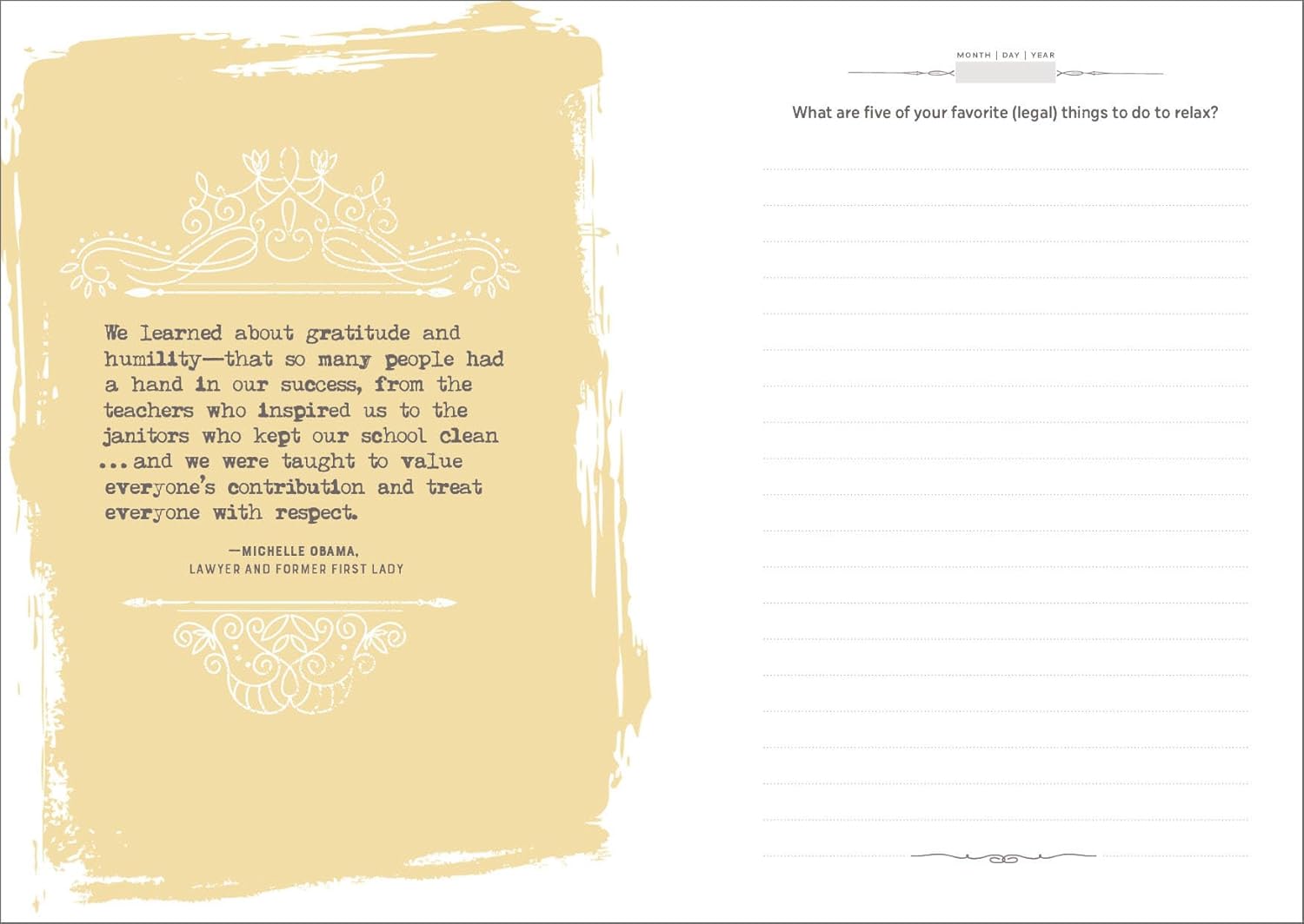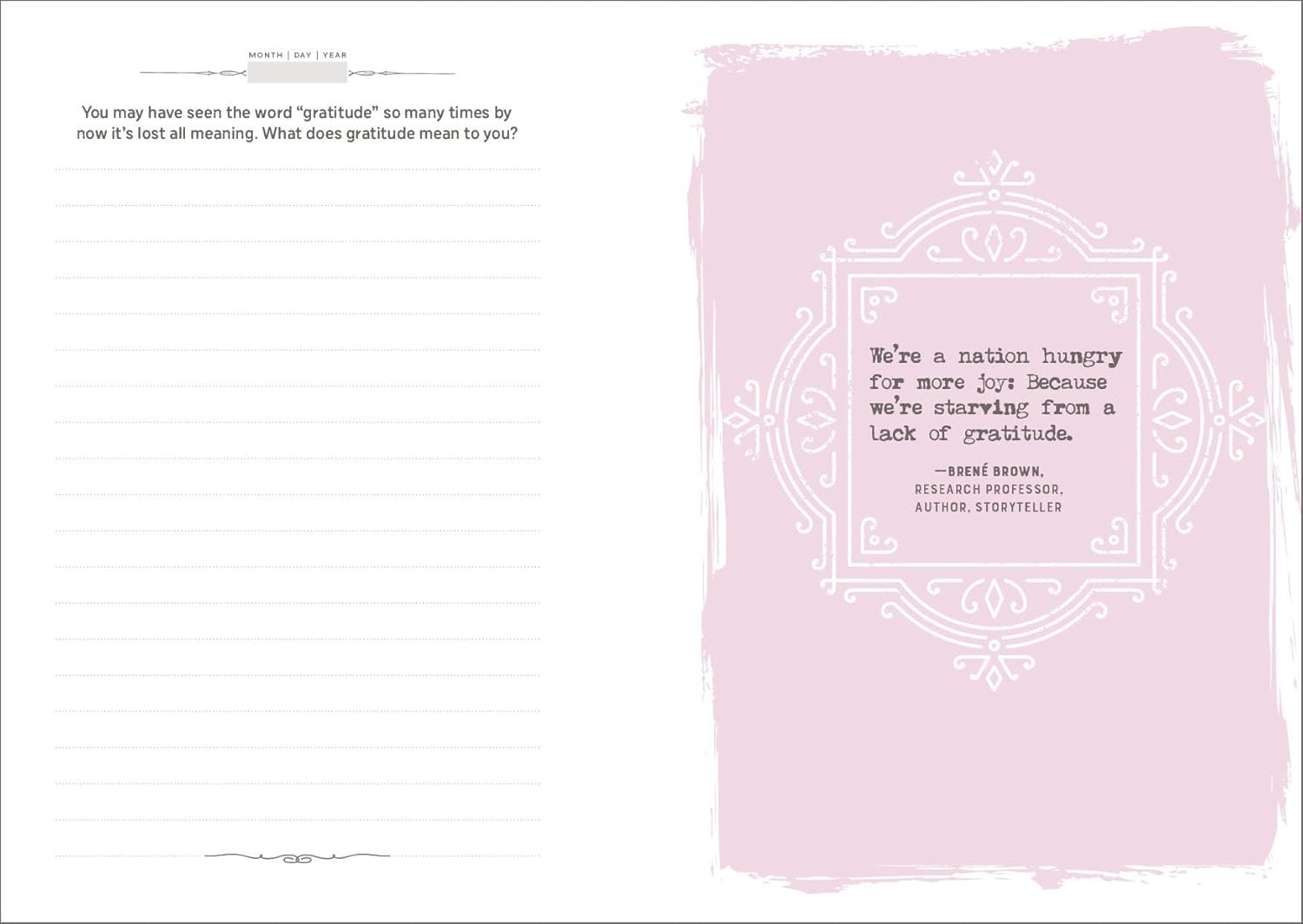 Start small―Is coffee the only thing you’re grateful for today? Great! Write it down.Gratitude and forgiveness―Come to terms with why crappy stuff might have ultimately been a positive experience for your life. (You don’t have to like it, though.)No rules―Write every day, write once a month, throw this journal across the room. It’s up to you.