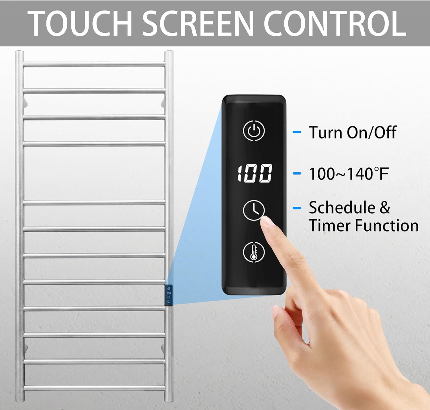[PREMIUM QUALITY WITH ELEGANT LOOK]: The bath towel warmer is made of durable 304 stainless steel, easy to clean and durable use. IP56 Waterproof standard and wall-mounted design maximizes your floor space.