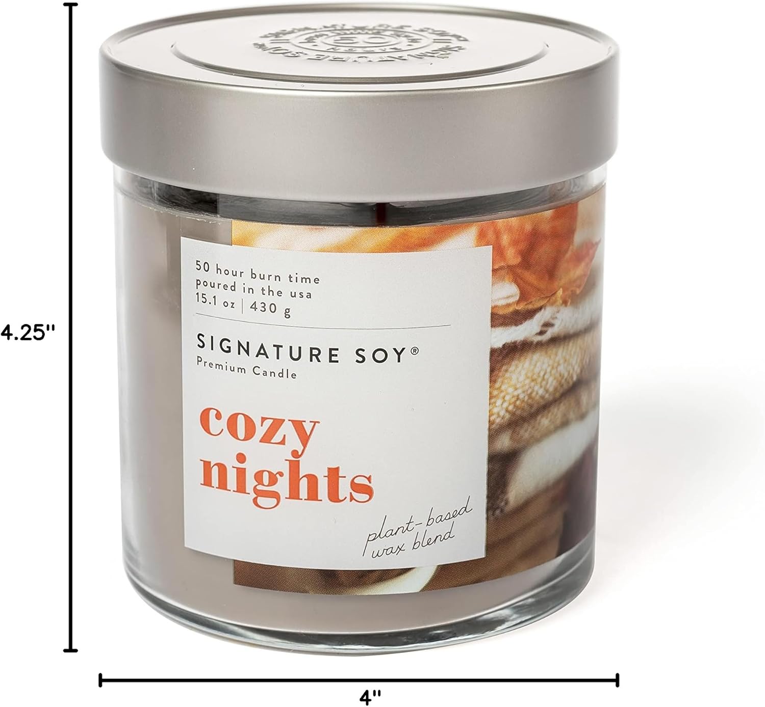 Candle measures 4″ L x 4″ W x 4.25″ H
