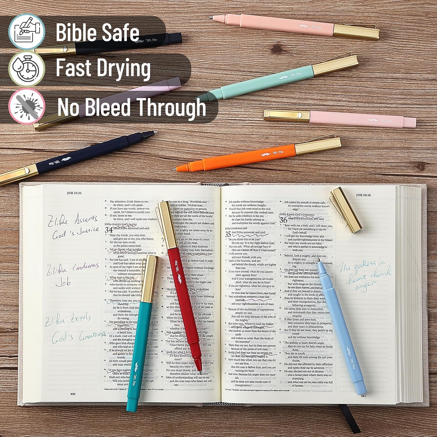 My favorite Bible journaling pens! My only complaint is that all the packs that have colored ink pens, there are a lot of the same colors in each pack. So if I buy this pack and a different one, Iâll probably end up with 4-5 double colors. Iâd rather have all different colors in every pack so I have a better variety. But I still love these colors and love these pens. They are beautiful, smooth, and work perfectly for Bible journaling, journaling, and planning!