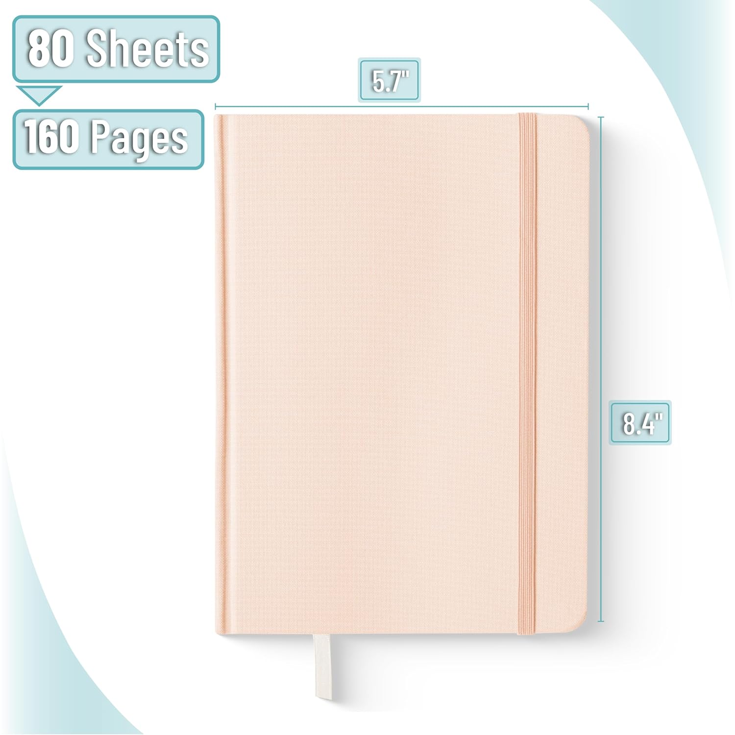 Mr. Pen dotted journal notebook features a beautiful blush pink fabric hardcover, offering an elegant and durable design that stands up to daily use while adding a touch of sophistication to your writing.This 5.7″x8.3″ journal contains 160 pages, giving you plenty of space for all your writing, sketching, and planning needs. The high-quality paper ensures a smooth writing experience with minimal bleed-through.The dotted grid format makes it perfect for bullet journaling, note-taking, sketching, and organizing your thoughts in a creative and functional way.Designed with a soft blush color, the journal is both stylish and practical, with a secure elastic closure and a ribbon marker for easy access to your current page.Ideal for students, professionals, and journaling enthusiasts, this notebook provides a versatile and attractive option for capturing ideas, thoughts, and goals in an organized manner.