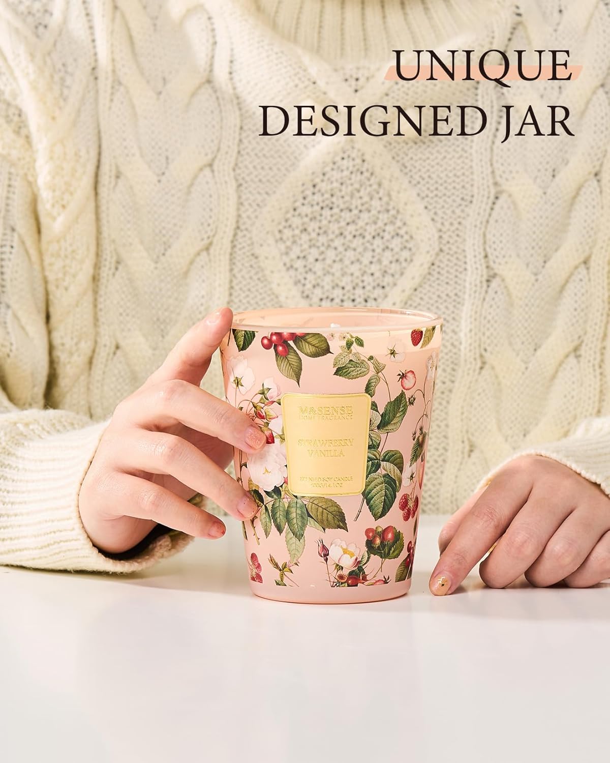 M&SENSE Strawberry Vanilla Scented Natural Soy Wax Candle, 14.1oz 60 Hours Long Lasting Slow Burning Candles for Home Decor, Aromatherapy Candle for Stress Relief