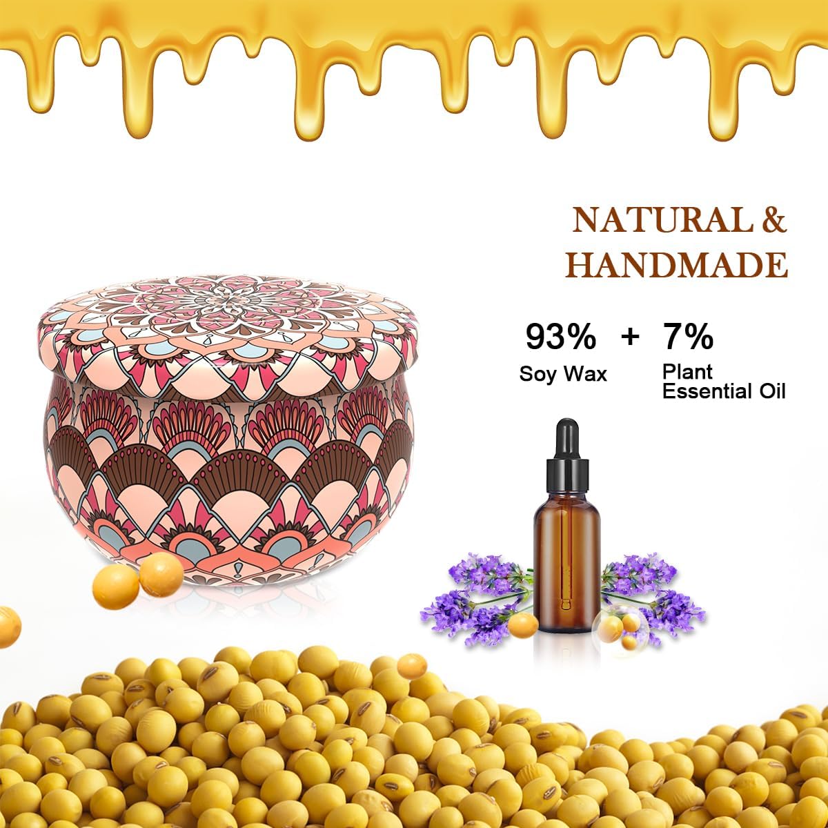🌿【100% Natural Soy Wax】Scented candles are made of natural soy wax and high-quality essential oils, safe for pregnant women, babies, families and pets. The wick is made of natural cotton, which is strong and durable, and are Smokeless Candles.