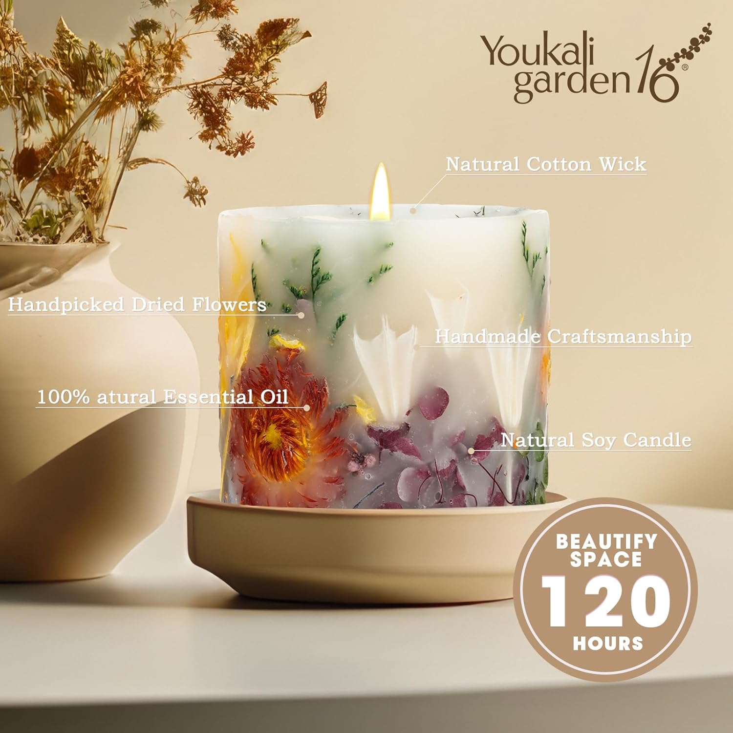 Slow-Burning Pillar Candles Scented:Hours of Tranquility Experience a long-lasting burn candles our flower candle. Infused with natural essential oils, it delivers a balanced, refreshing scent that’s never overpowering. The cotton wick ensures a clean, low-soot burn, an even wax pool, and a warm, inviting glow, scented candles making it the perfect companion for peaceful moments at home.