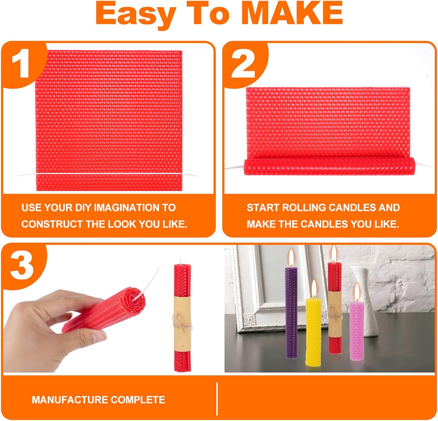 Thleunei Beeswax Candle Making Kit for Kids – 24 Pack 10×8 Inch Beeswax Sheets Candles Making Kit Supplies – Perfect DIY Craft Gift for All Ages,Create Beautiful, All-Natural Candles at Home