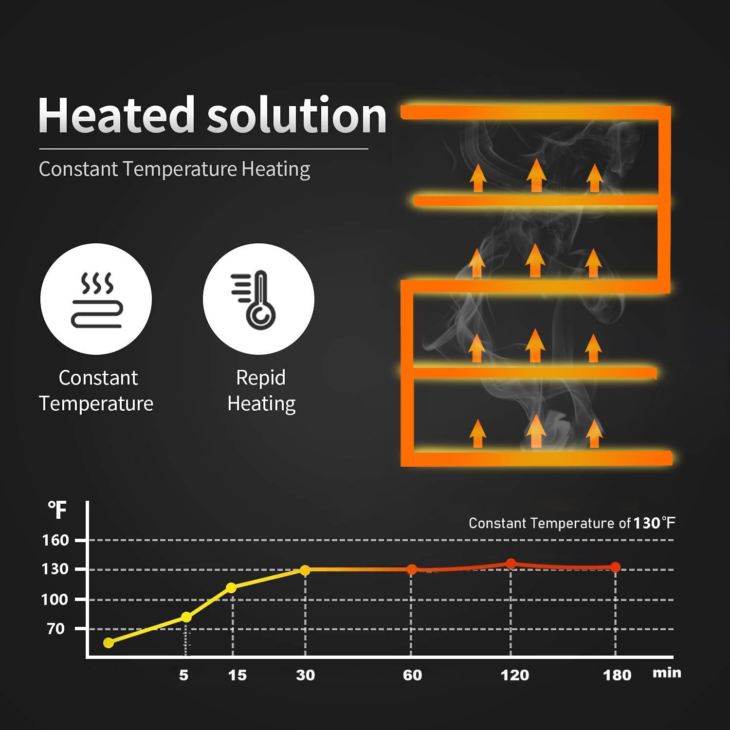 304 stainless steel, rapid heating, rated power 110W, only 10 minutes, it can be heated to 100 °F, 15 minutes to reach the optimal working temperature 130 °F, (based on room temperature 68 °F), energy saving and high efficiency.