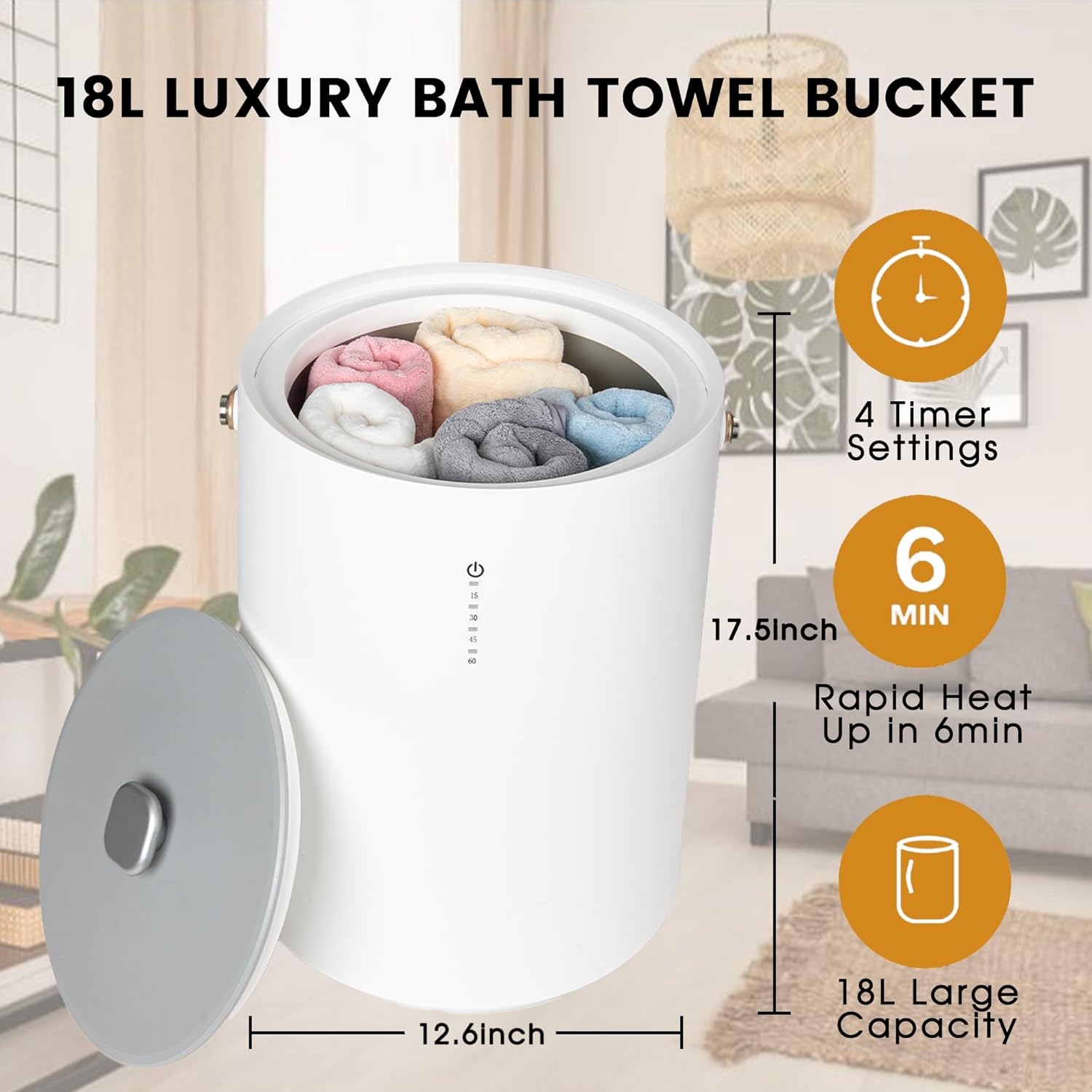 Spacious 18L Capacity: Our towel warmer features an ample 18-liter capacity, perfect for warming multiple towels, blankets, or clothes. Ideal for families, spa lovers, or anyone who enjoys the luxury of a warm towel after a bath or shower.