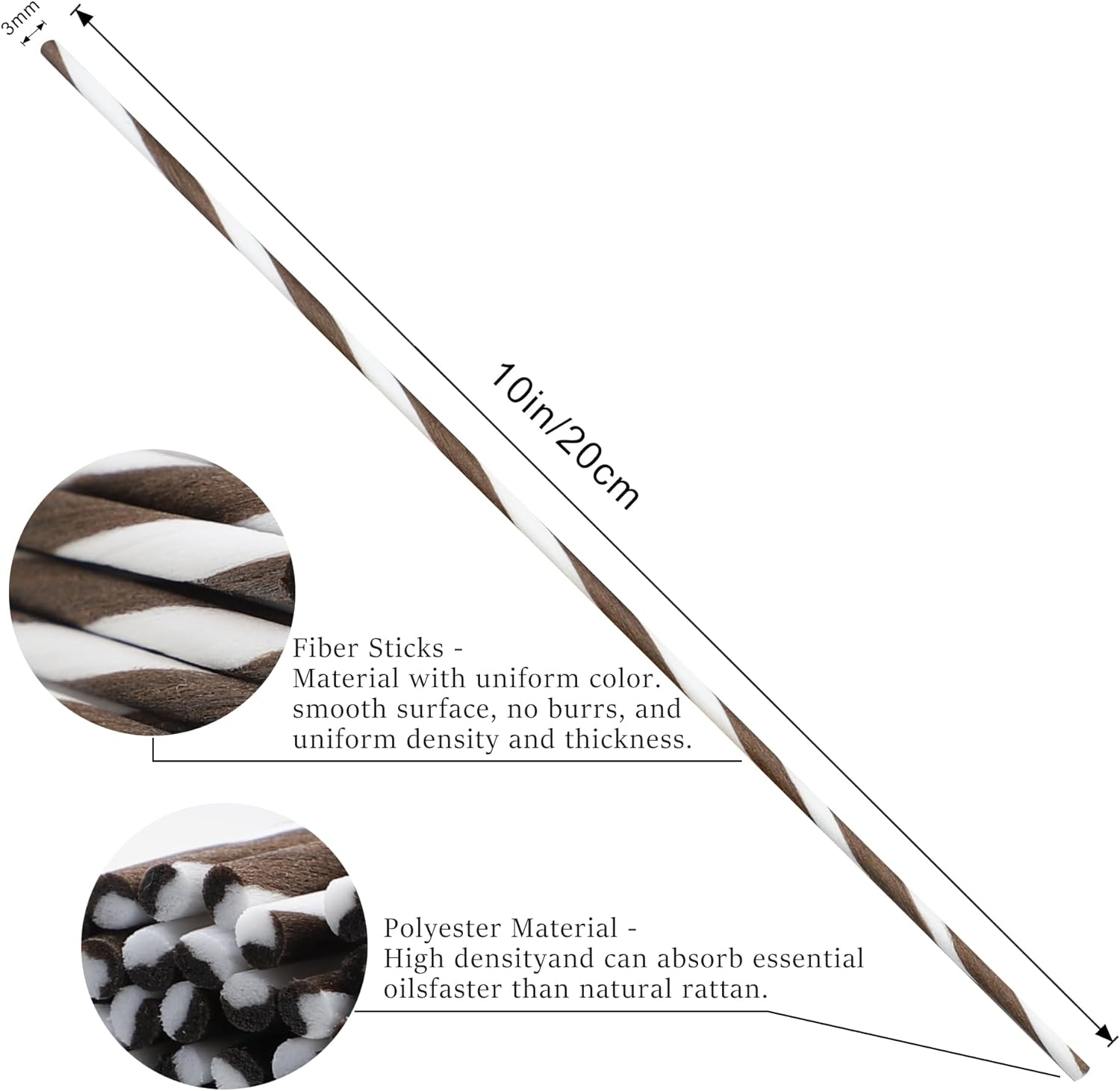 VFULIE Premium Fiber Reed Diffuser Sticks – 100pcs Bulk Pack, 3mm x 20cm High Absorption Refill Sticks for Essential Oil Diffusers, Eco-Friendly and Long-Lasting (Brown & White)