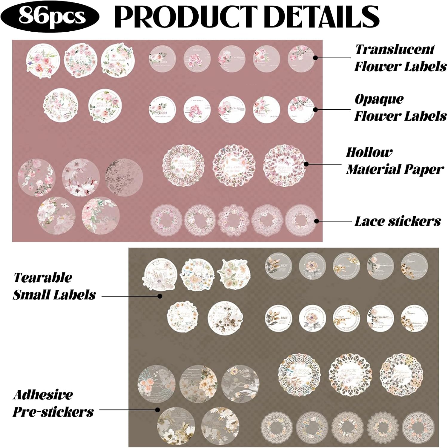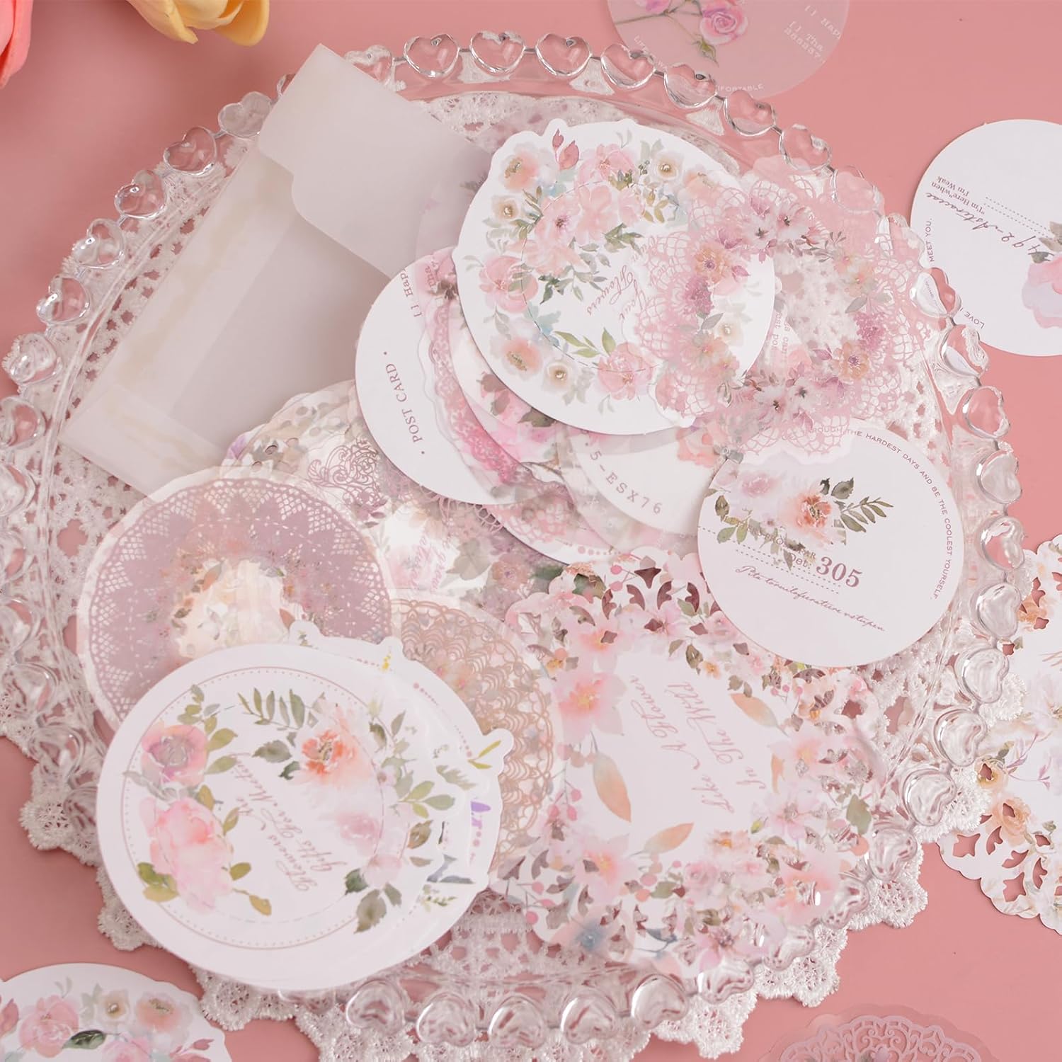 【PACKAGE INCLUDE】Package contains 86 pcs floral themed scrapbook materials and stickers in 2 colors. 43* pink themed scrapbook materials, and 43* apricot themed scrapbook materials with light and elegant colors.